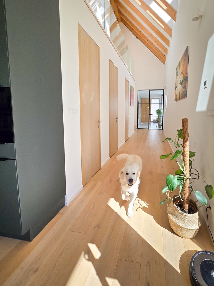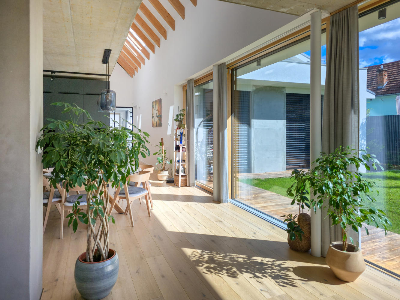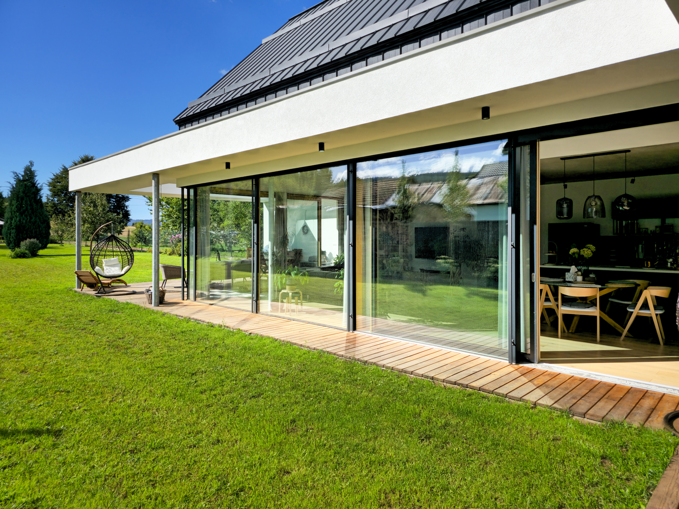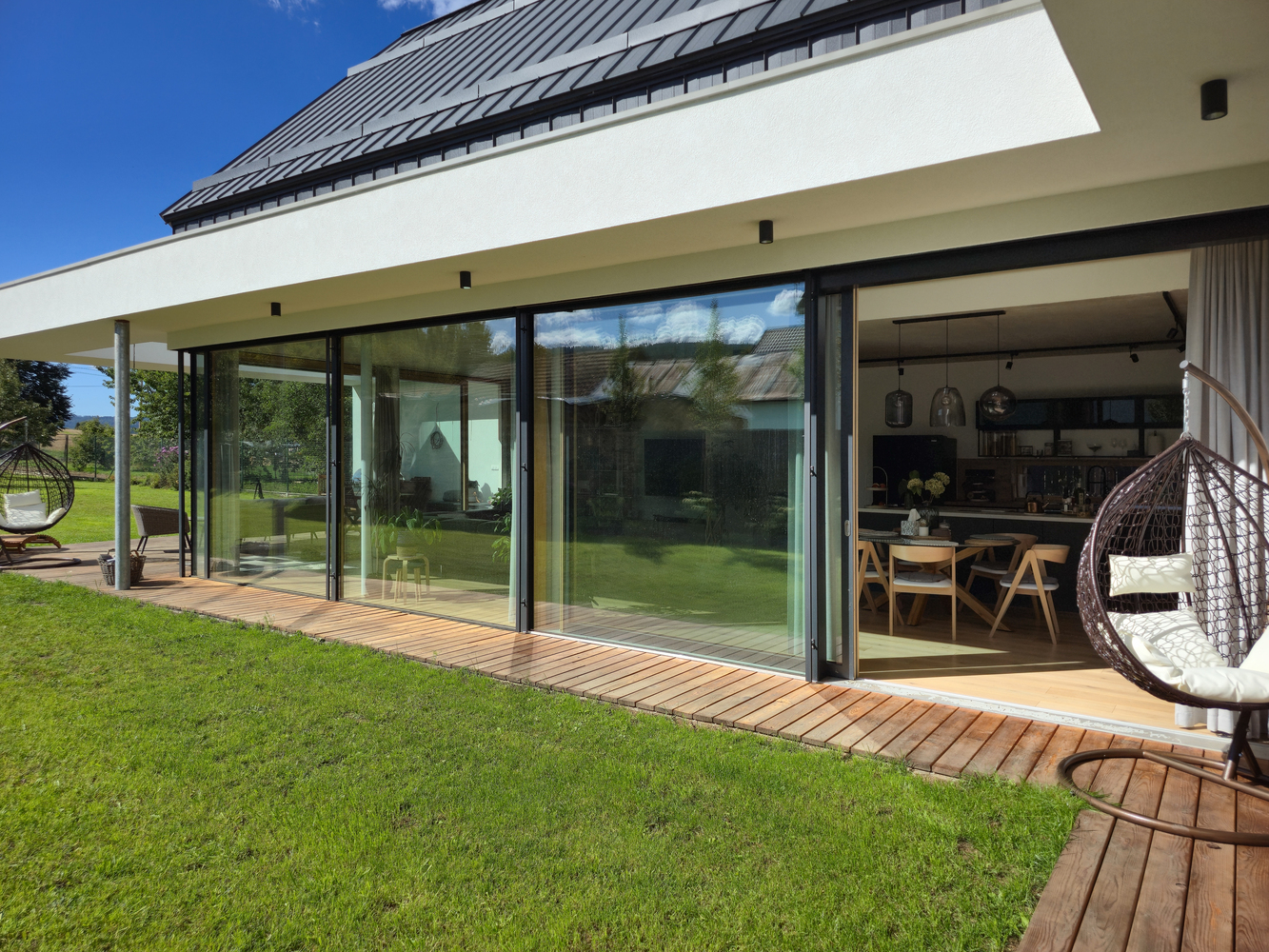 Na úpätí Nízkych Tatier, v tichej obci Kubachy, vyrástol moderný rodinný dom, ktorý spája precíznu architektúru s výnimočným výhľadom a čistotou detailu. Dominantným prvkom tejto stavby sú okná KUNAJ Vision, ktoré prinášajú maximálne presklenie a minimalistický dizajn s dôrazom na bezrámové riešenia. Najvýraznejším prvkom je rohové lepené okno v tvare písmena L, ktoré bez viditeľného stĺpika plynulo prepája interiér so záhradou a otvára priestor dennému svetlu. Týmto riešením sa dosiahla absolútna vizuálna čistota – steny miznú a príroda sa stáva prirodzenou súčasťou interiéru. Ďalším zaujímavým detailom sú šikmé okná lícujúce strešnú rovinu, ktoré kopírujú architektonickú líniu domu a vytvárajú harmonický prechod medzi fasádou a strechou. Práve tieto šikmé prvky dotvárajú jedinečný charakter stavby a zdôrazňujú remeselnú presnosť našej výroby. Tento projekt sme prvýkrát predstavili ešte v roku 2023, keď bol dom vo fáze výstavby. Dnes sa doň vraciame, aby sme ukázali dokončený výsledok – moderné bývanie so záhradou, kde okná KUNAJ Vision tvoria dôležitý estetický aj funkčný prvok celku. Riešenie Vision predstavuje filozofiu našej značky v jej najčistejšej podobe: minimálne rámovanie, maximálne svetlo, technická dokonalosť a prepojenie s prírodou.